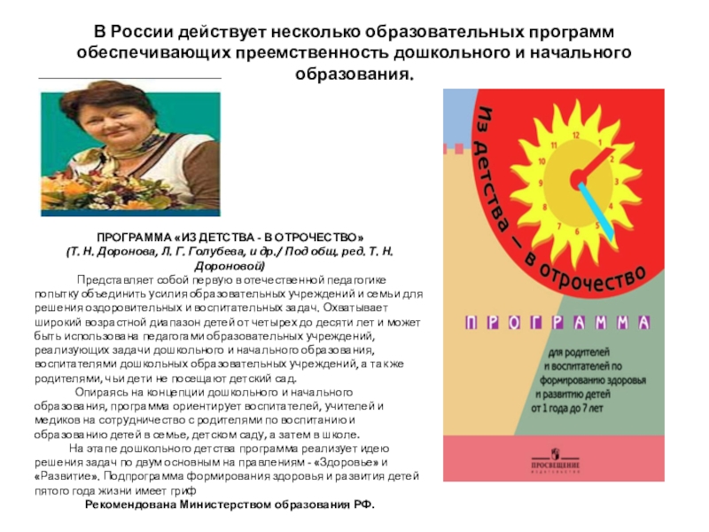 Слайд 8В России действует несколько образовательных программ обеспечивающих преемственность дошкольного и начального