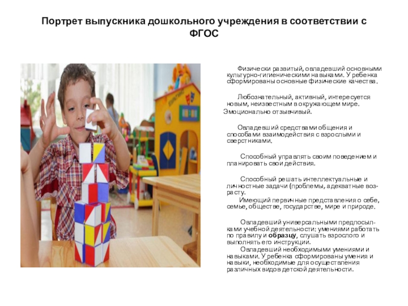 Слайд 19Портрет выпускника дошкольного учреждения в соответствии с ФГОС