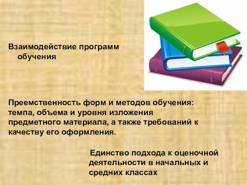 Преемственность форм и методов обучения: темпа, объема и уровня изложения предметного материала, а также требований к качеству его оформления.