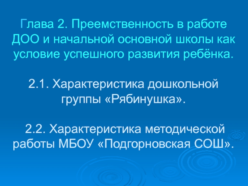 Слайд 17Глава 2. Преемственность в работе ДОО и начальной основной школы как