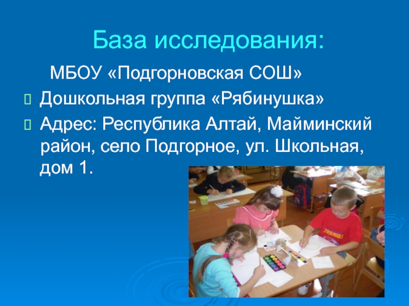 Слайд 8База исследования: