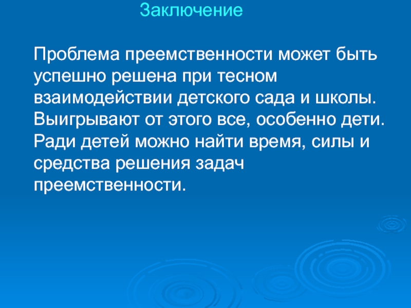 Ради детей можно найти время, силы и средства решения задач преемственности.