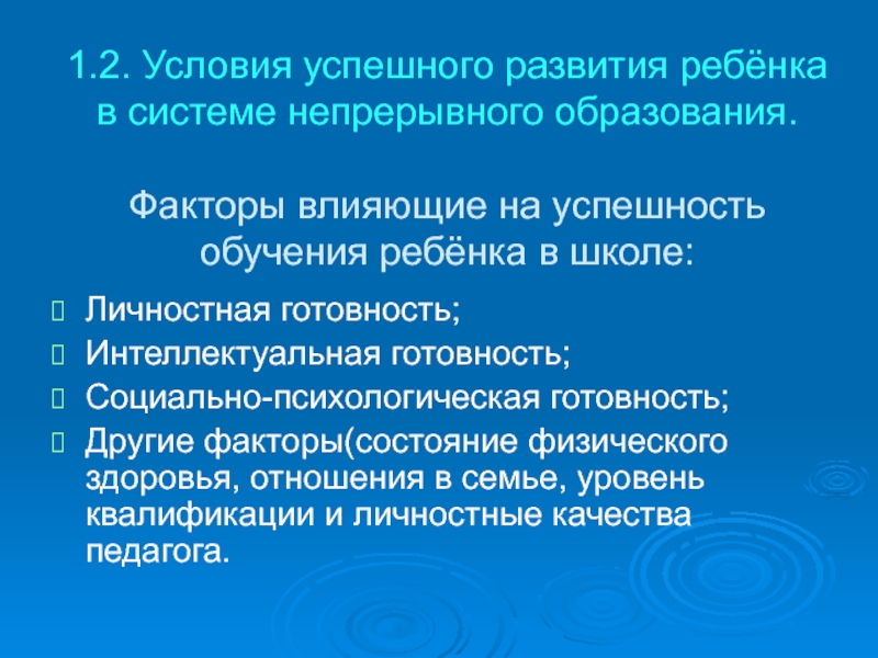 Слайд 131.2. Условия успешного развития ребёнка в системе непрерывного образования.