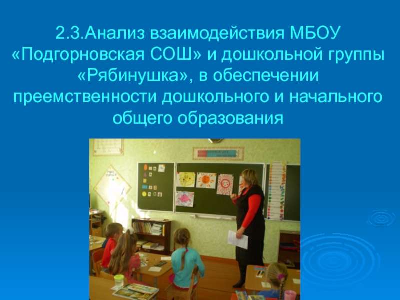 Слайд 182.3.Анализ взаимодействия МБОУ «Подгорновская СОШ» и дошкольной группы «Рябинушка», в обеспечении