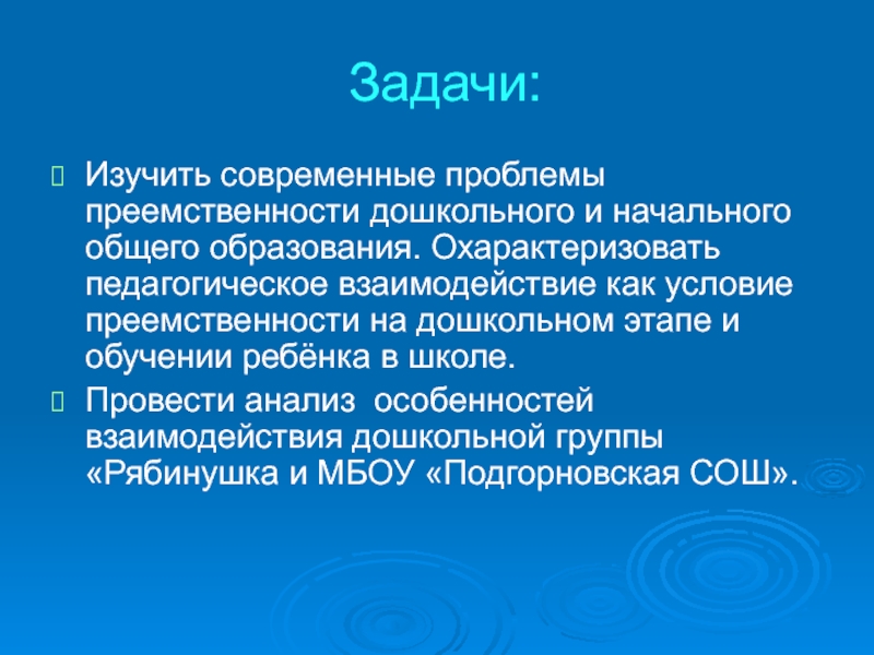 Изучить современные проблемы преемственности дошкольного и начального общего образования. Охарактеризовать