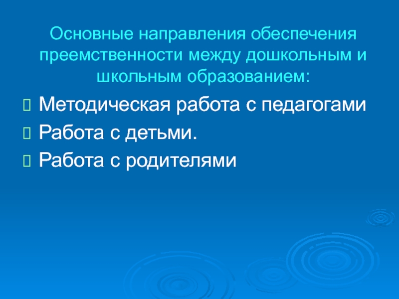 Слайд 21Основные направления обеспечения преемственности между дошкольным и школьным образованием: