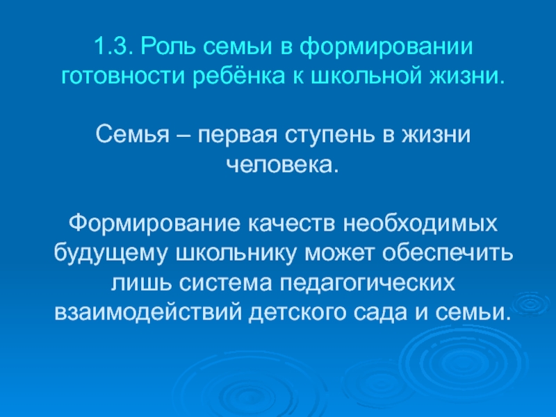 Слайд 151.3. Роль семьи в формировании готовности ребёнка к школьной жизни.