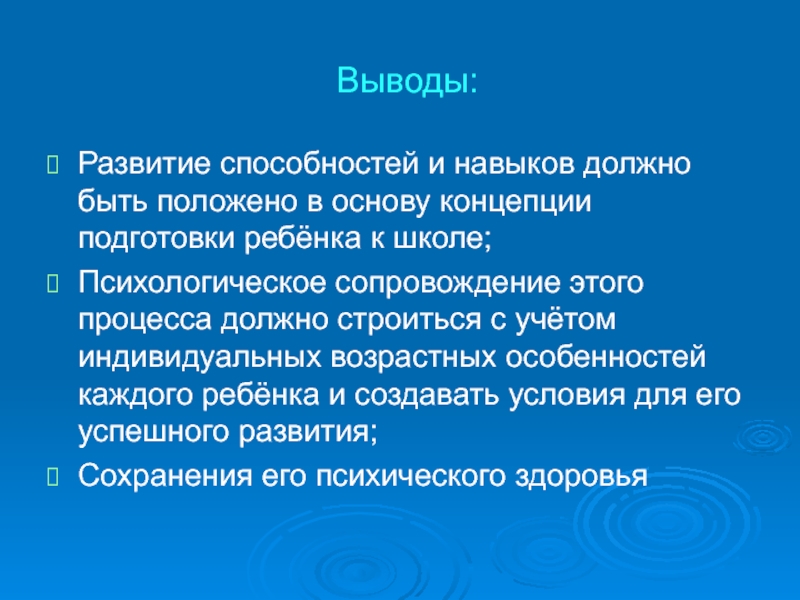Психологическое сопровождение этого процесса должно строиться с учётом индивидуальных возрастных особенностей каждого ребёнка и создавать условия для его успешного развития;