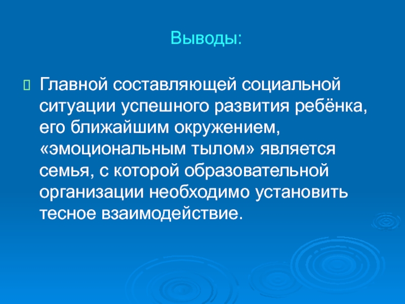 Главной составляющей социальной ситуации успешного развития ребёнка, его ближайшим окружением, «эмоциональным
