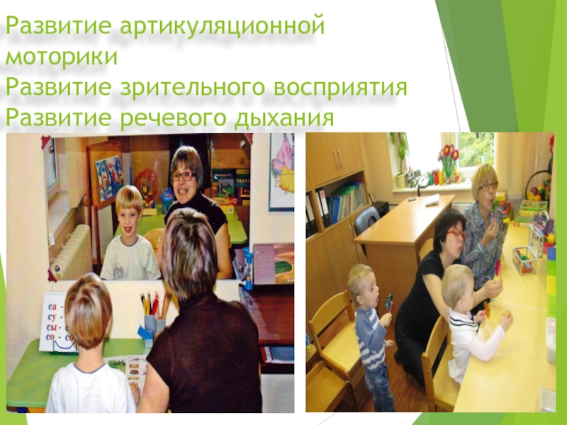 Слайд 3Развитие артикуляционной моторики Развитие зрительного восприятия Развитие речевого дыхания
