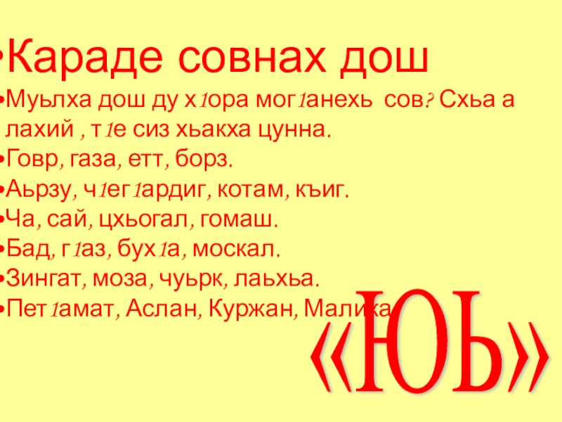 «ЮЬ» Караде совнах дошМуьлха дош ду х1ора мог1анехь сов? Схьа а лахий , т1е сиз хьакха цунна.Говр,