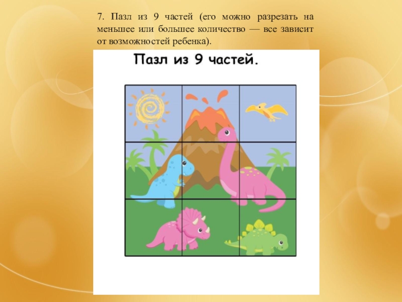 7. Пазл из 9 частей (его можно разрезать на меньшее или большее количество — все зависит от возможностей ребенка).