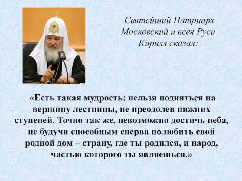Святейший Патриарх Московский и всея Руси Кирилл сказал: