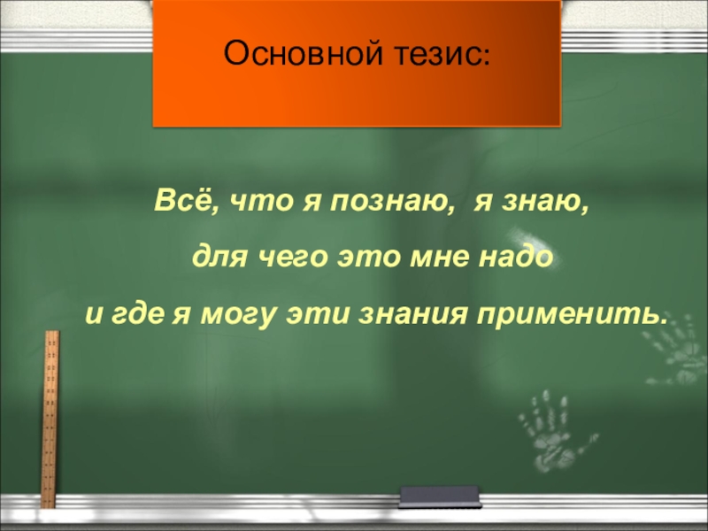 Основной тезис:Всё, что я познаю, я знаю, для чего это мне надо и где я могу эти знания применить.