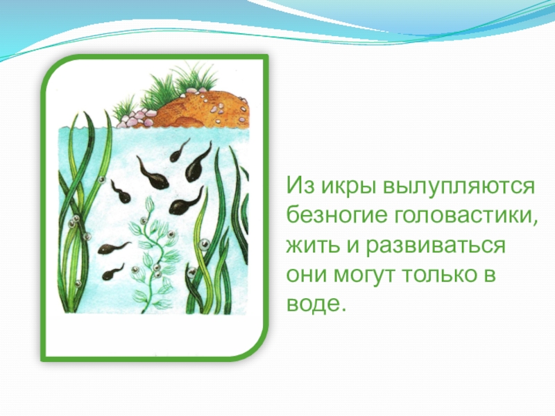Слайд 5Из икры вылупляются безногие головастики, жить и развиваться они могут только