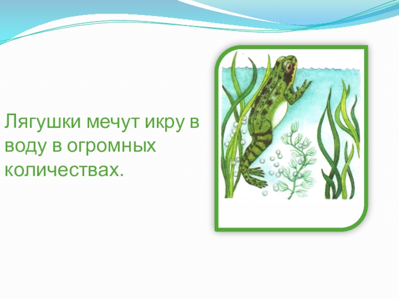 Слайд 4Лягушки мечут икру в воду в огромных количествах.