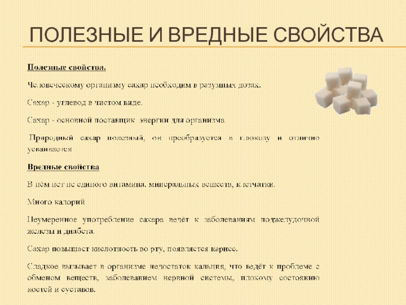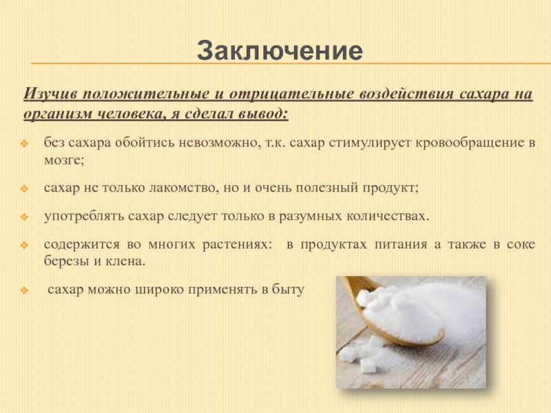 Цель: : Изучение положительных и отрицательных воздействий сахара на организм человека.
