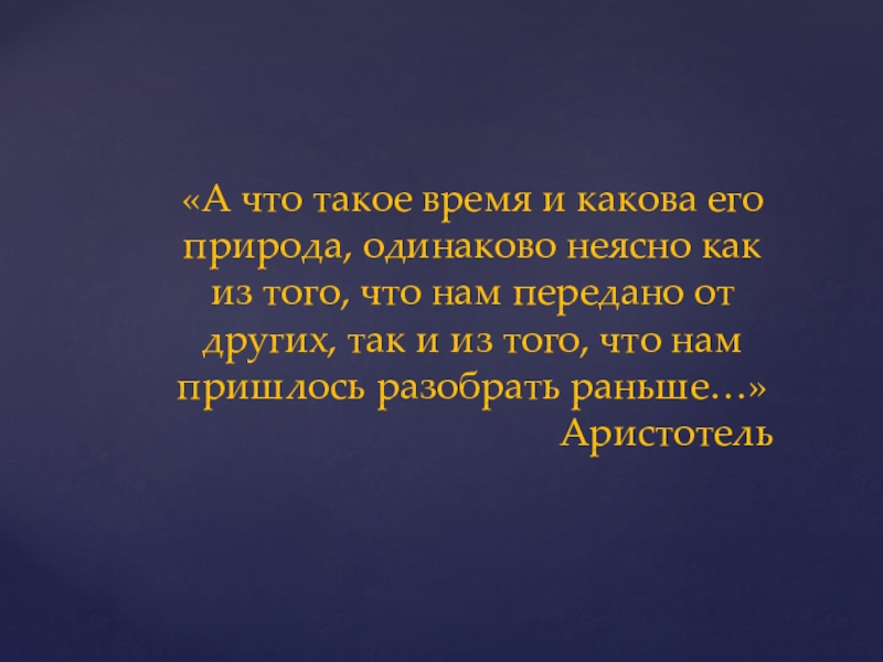Слайд 2«А что такое время и какова его природа, одинаково неясно как
