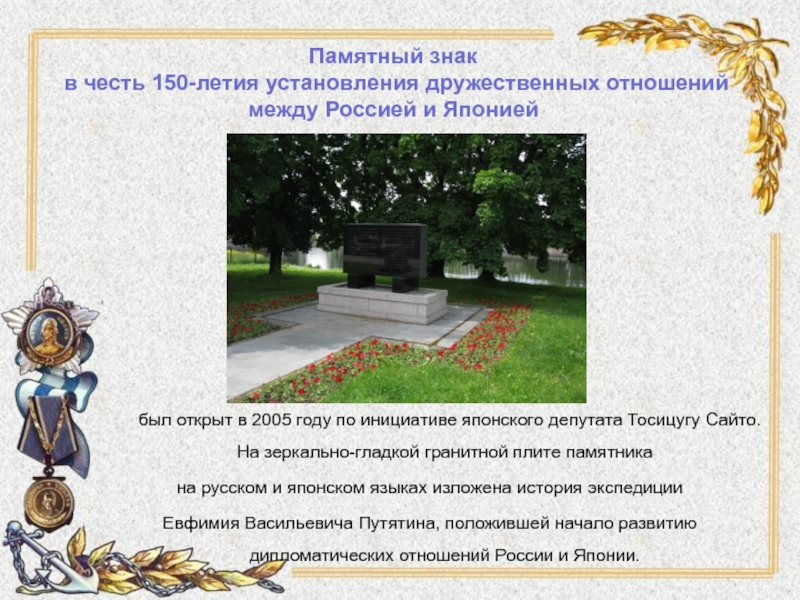 Евфимия Васильевича Путятина, положившей начало развитию дипломатических отношений России и Японии.