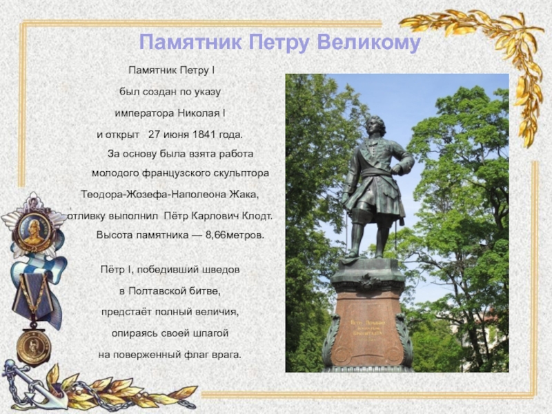 Четырехметровая фигура флотоводца возвышается на пьедестале,