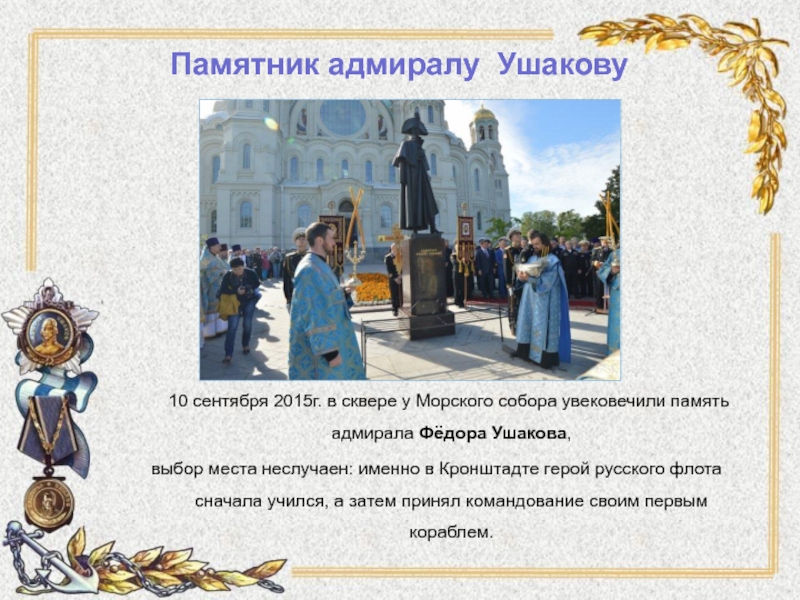 выбор места неслучаен: именно в Кронштадте герой русского флота сначала учился, а затем принял командование своим первым кораблем.