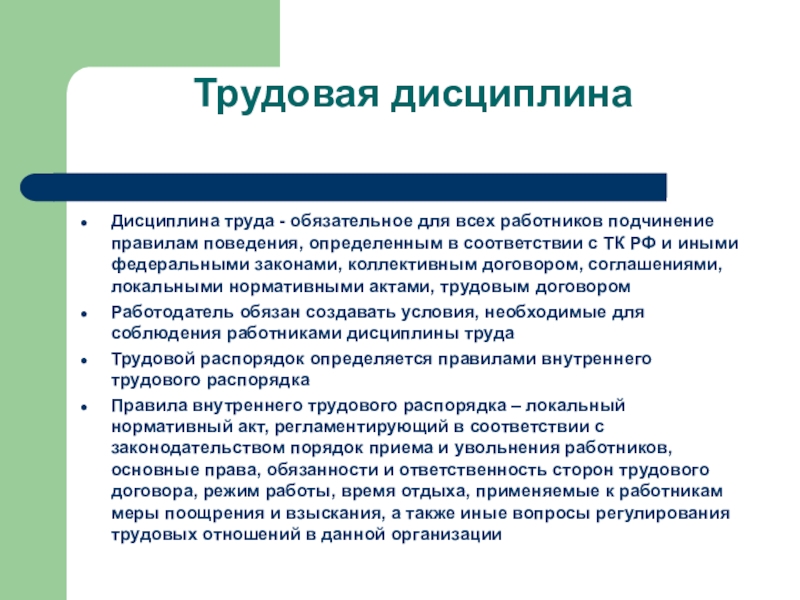 Дисциплина труда - обязательное для всех работников подчинение правилам поведения,