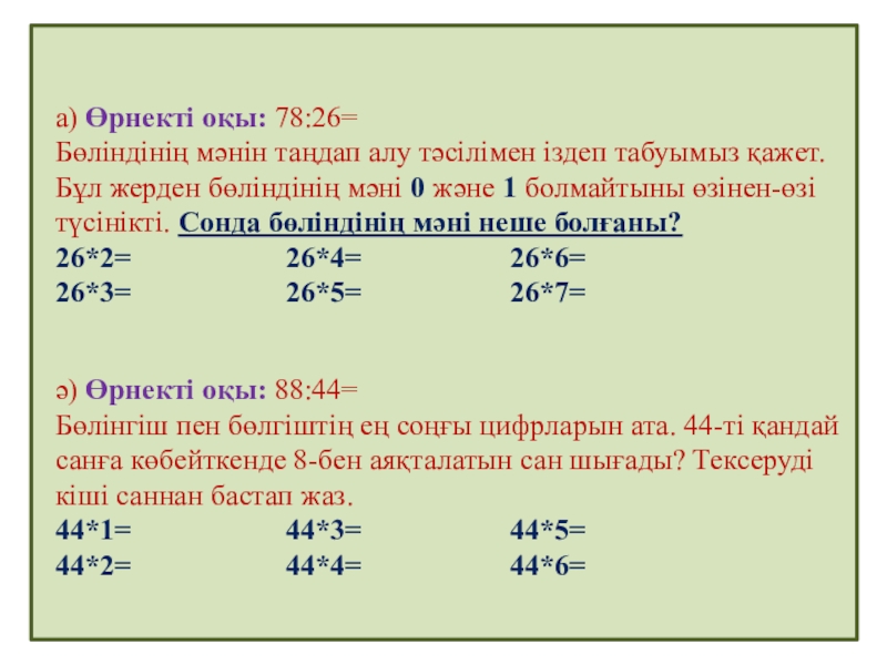 Бөлінгіш пен бөлгіштің ең соңғы цифрларын ата. 44-ті қандай санға көбейткенде 8-бен аяқталатын сан шығады? Тексеруді кіші саннан бастап жаз.