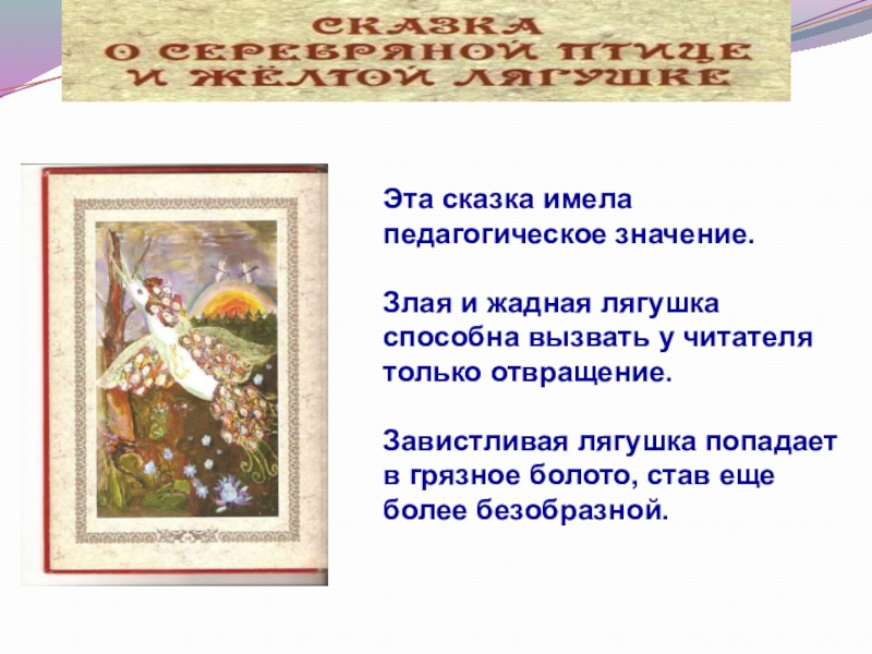 Слайд 33Эта сказка имела педагогическое значение.