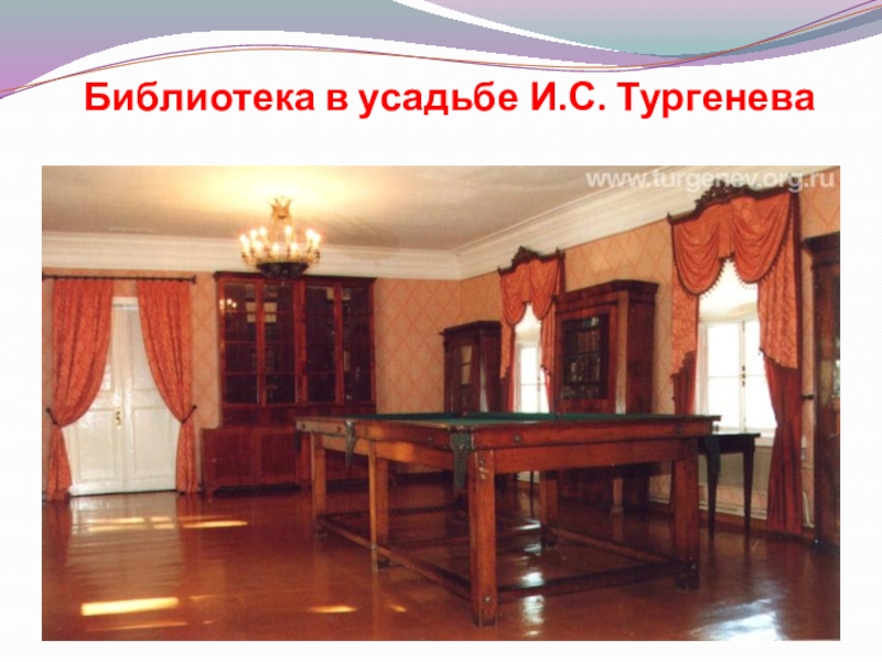 Слайд 11 Библиотека в усадьбе И.С. Тургенева