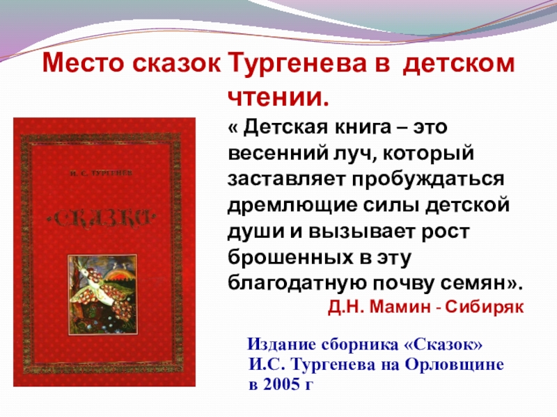 Роль сказки в детстве будущего писателя И.С. Тургенева.