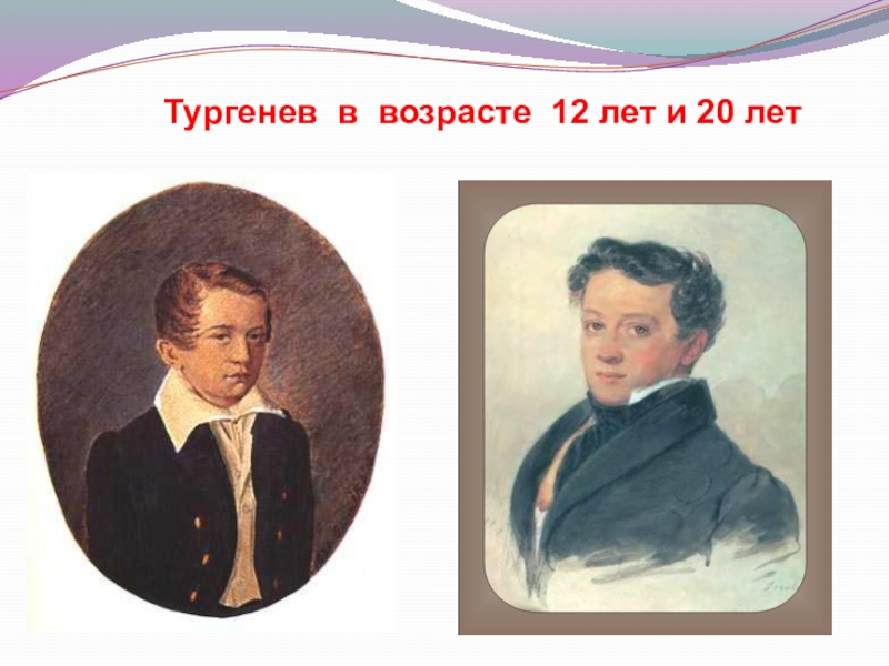 Слайд 12Тургенев в возрасте 12 лет и 20 лет