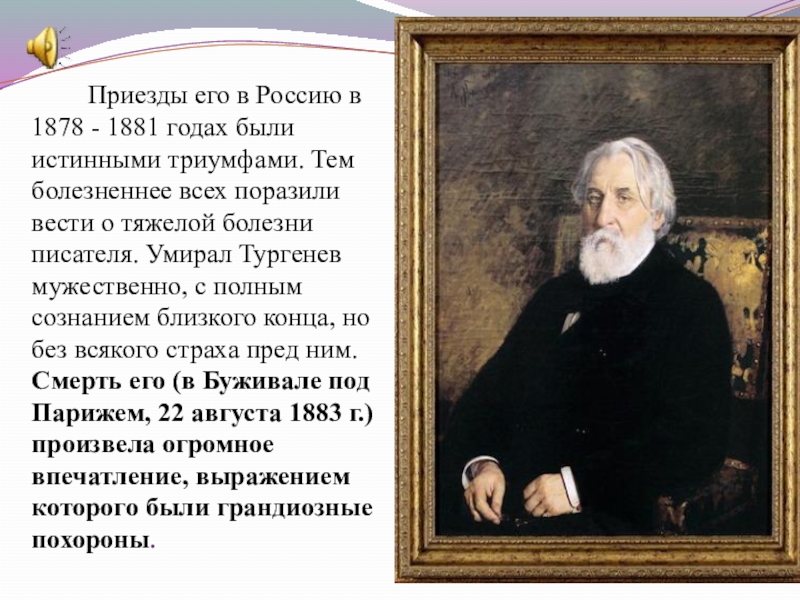 К концу жизни слава Тургенева