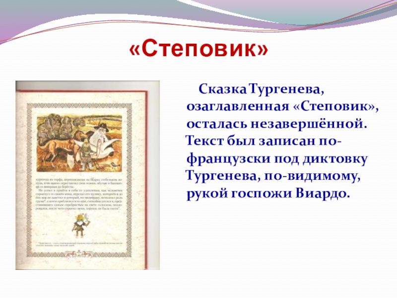 Сказка Тургенева, озаглавленная «Степовик», осталась незавершённой. Текст
