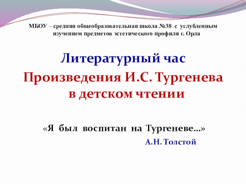 Слайд 1МБОУ – средняя общеобразовательная школа №38 с углубленным изучением предметов эстетического