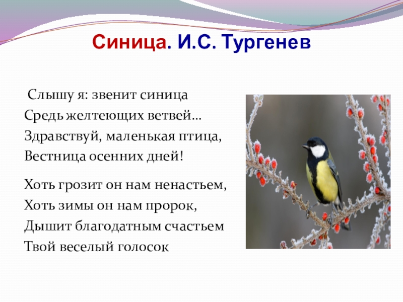Слайд 45Синица. И.С. Тургенев