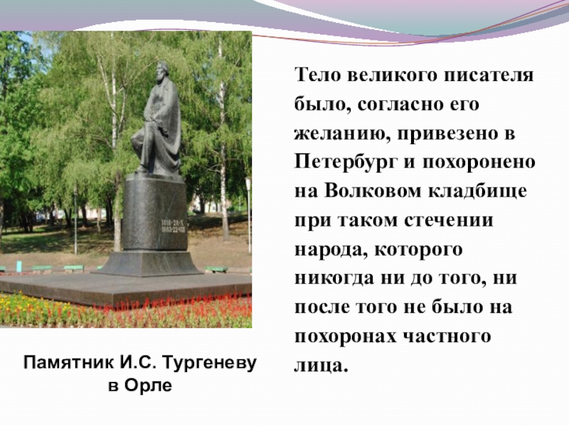 Слайд 42 Могила И.С. Тургенева в Санкт –Петербурге. Волково кладбище