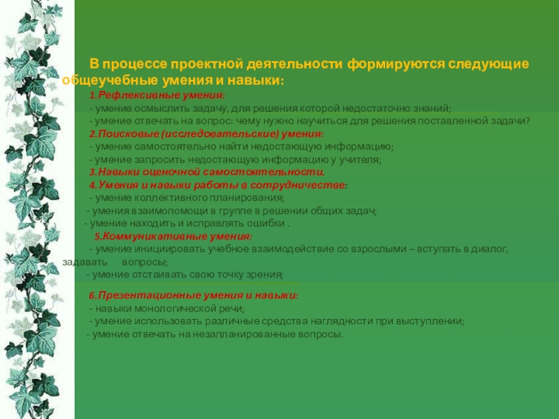 Слайд 18В процессе проектной деятельности формируются следующие общеучебные умения и навыки: