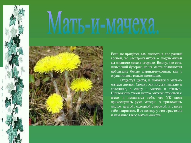 Слайд 10Мать-и-мачеха.