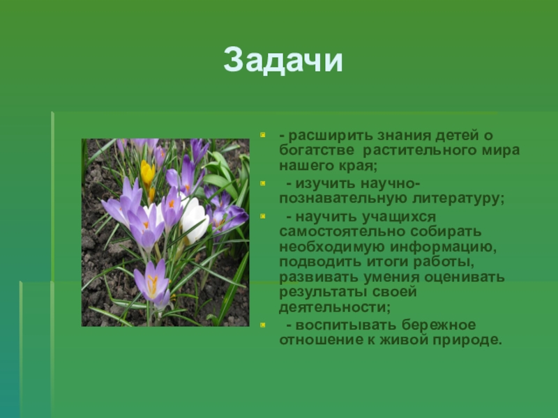 - расширить знания детей о богатстве растительного мира нашего края;