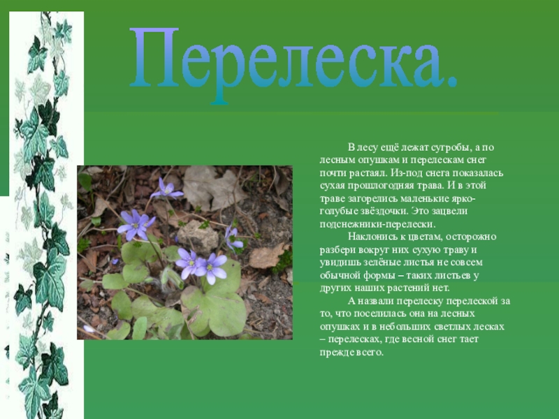 Слайд 5Перелеска.