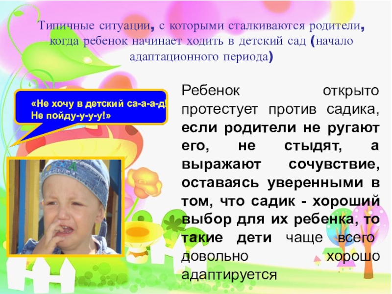 Типичные ситуации, с которыми сталкиваются родители, когда ребенок начинает ходить в детский сад (начало адаптационного периода)