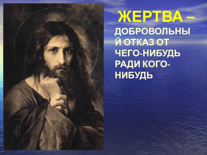 Слайд 5 ЖЕРТВА – ДОБРОВОЛЬНЫЙ ОТКАЗ ОТ ЧЕГО-НИБУДЬ РАДИ КОГО-НИБУДЬ