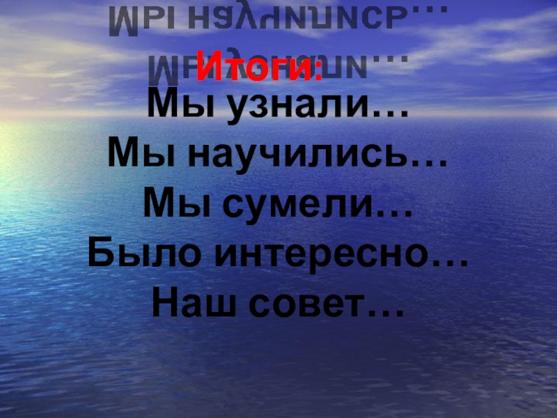 Слайд 10 Мы узнали… Мы научились… Мы сумели… Было интересно… Наш совет…