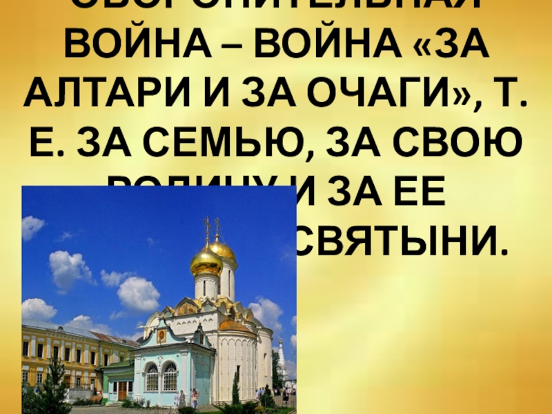 Слайд 4ОБОРОНИТЕЛЬНАЯ ВОЙНА – ВОЙНА «ЗА АЛТАРИ И ЗА ОЧАГИ», Т.Е. ЗА