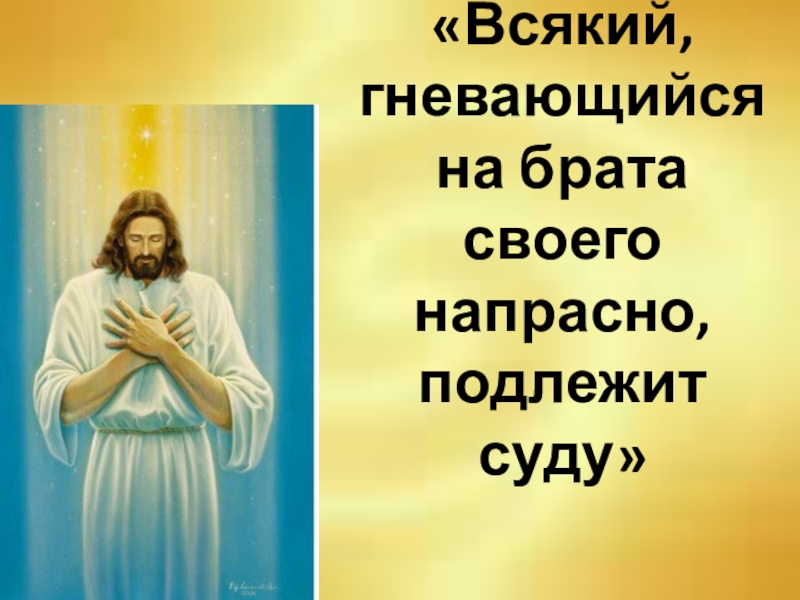 Слайд 2«Всякий, гневающийся на брата своего напрасно, подлежит суду»