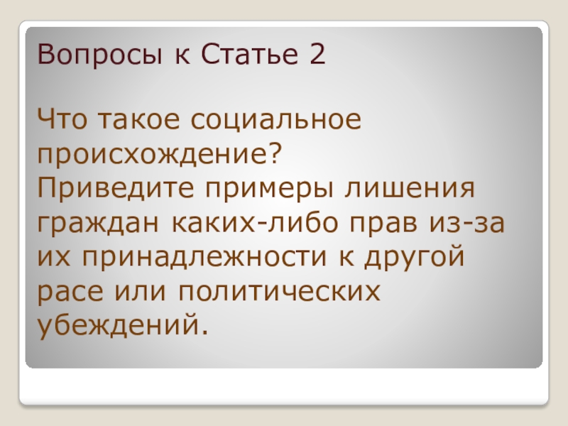прав из-за их принадлежности к другой расе или политических убеждений.