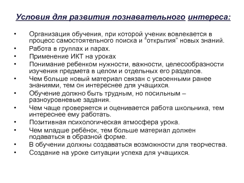 Какие же условия способствуют развитию познавательного интереса у учащихся?