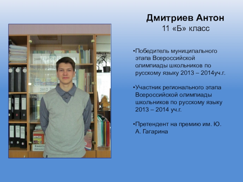 Победитель муниципального этапа Всероссийской олимпиады школьников по русскому языку 2013 – 2014 уч. г.