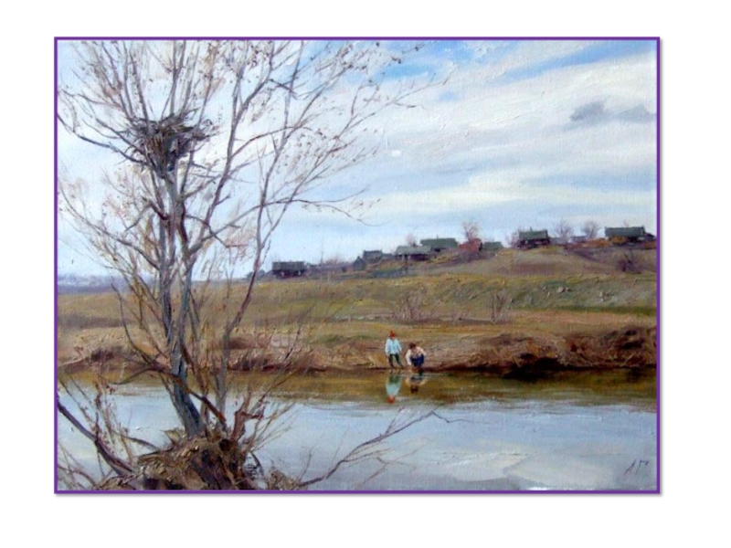 Слайд 13В апреле земля теплеет и воды разливаются.
