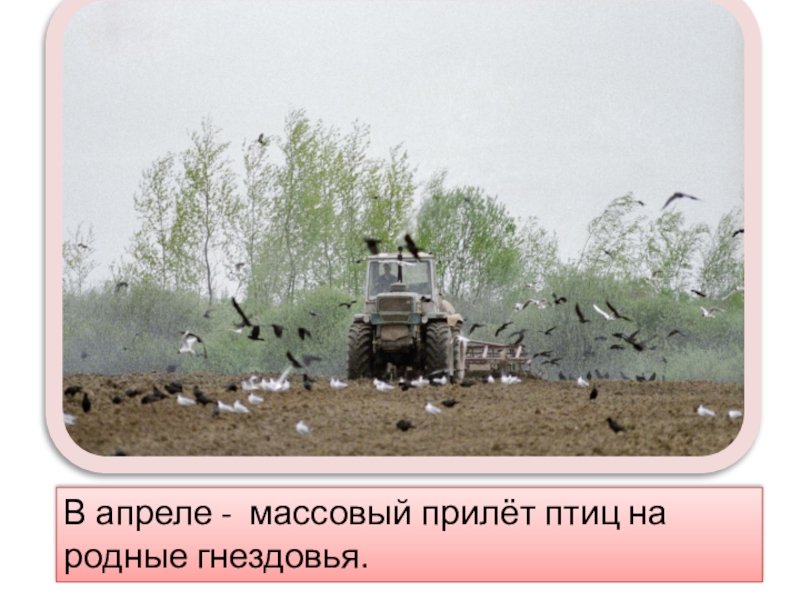 Слайд 15В апреле - массовый прилёт птиц на родные гнездовья.